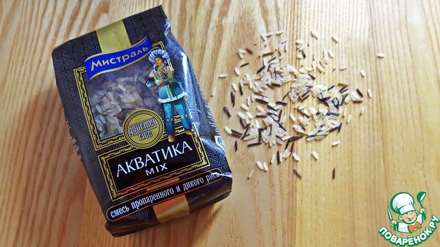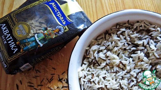 Для приготовления этого интересного блюда, я буду использовать не менее интересную и вкусную смесь пропаренного и дикого риса - Акватика Mix от ТМ "Мистраль". Во-первых, это очень украшает блюдо и придает ему эффектность. А во вторых, дикий рис - очень полезен.