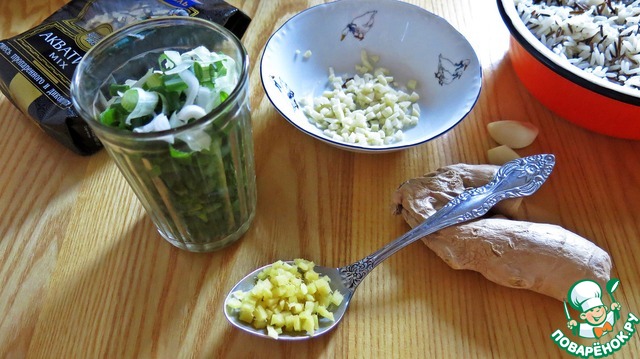 Ингредиенты для «Имбирный жареный рис с яйцом»: