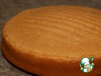 Готовый корж остудить и разрезать на две равные части. |