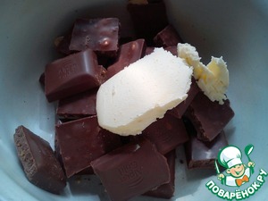 • Готовим шоколадную заливку. Шоколад растопить со сливочным маслом.