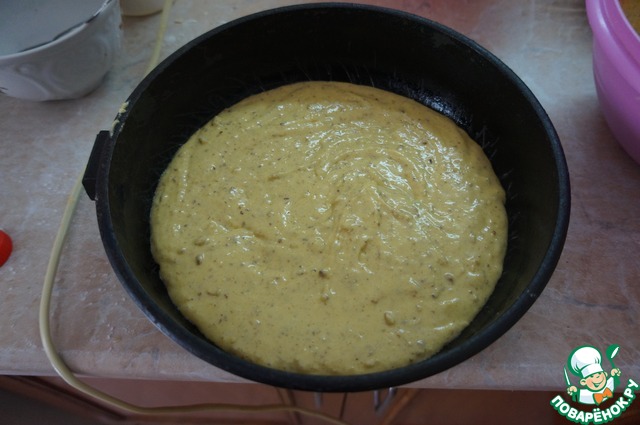 Духовку разогреваем до 200 С. Тесто разделяем на две части. Дно формы застилаем бумагой и смазываем растительным маслом. Половину теста выливаем в форму и выпекаем 20-30 минут, то же самое делаем со 2 половиной теста. На готовность коржи проверяем зубочисткой.