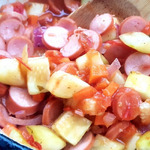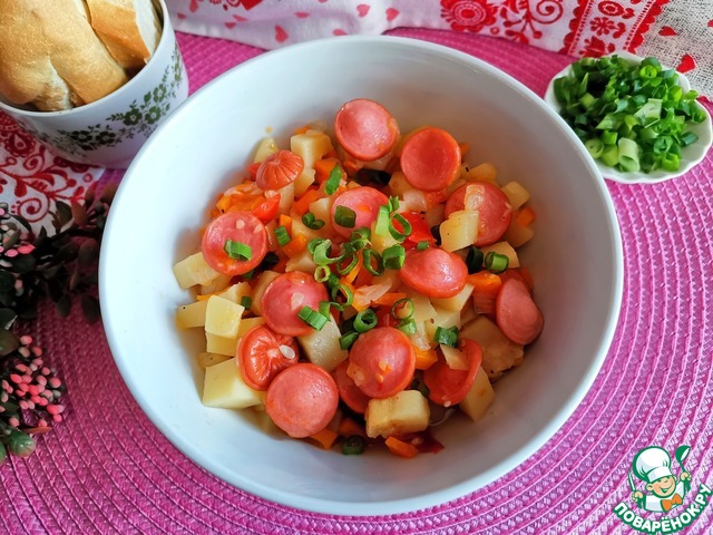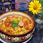 Ингредиенты для «Тушеные кабачки с сосисками»: