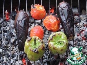 Запечь овощи на углях до почернения шкурки и мягкости. В домашних условиях можно воспользоваться духовкой - но запаха дымка уже не получится.