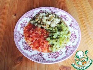 Овощи слегка остудить и очистить от шкурки, а перец - еще и от семян. Нарезать не слишком мелко.