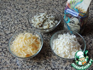 Рис "Акватика микс" ТМ "Мистраль" (с добавлением дикого риса) отварить по инструкции; для начинки пирога потребуется около 1 стакана готового риса. Брынзу и сыр натереть на крупной терке.
