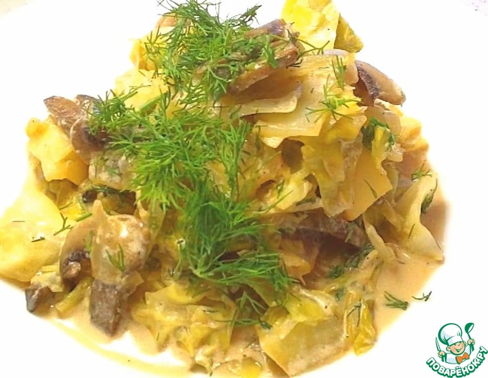 Тушеная капуста с грибами в сметане. Низкокалорийное аппетитное блюдо которое захочется приготовить еще раз.