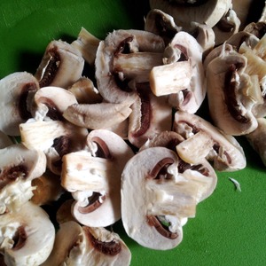 4. Крупные грибы режем пластинками, мелкие - на четвертинки.