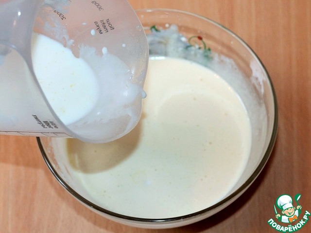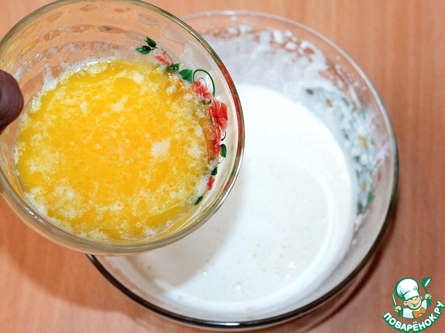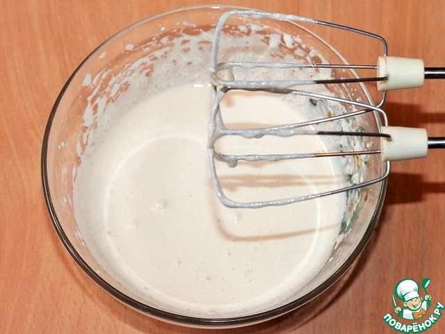 Яйца смешать с сахаром и взбить миксером в пышную пену.