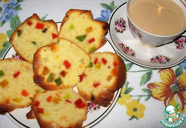 Вкусный и нежный кексик. Цукаты взяла тыквенные, получилось вкусно, но не так красиво, как с разноцветными.