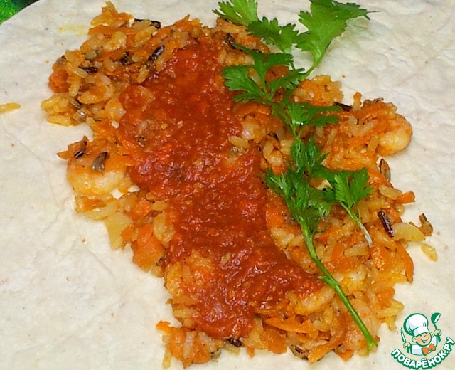Лаваш с диким рисом, креветками, морковью и аджикой. Легко и быстро можно приготовить эту закуску на природе...