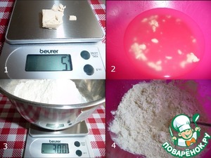Вечером дрожжи развести в теплой воде, добавить муку, замесить тесто. -