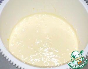В яично сахарную смесь всыпала просеянную муку, ванильный сахар, разрыхлитель теста, вылила жидкое сливочное масло и переложила густую сметану. Тесто перемешала в блендере до однородного состояния.