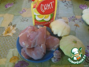 Ингредиенты для «Куриные бeдра с патиссонами»: