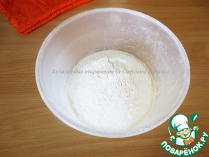 Муку просеять, добавить щепотку соли, перемешать