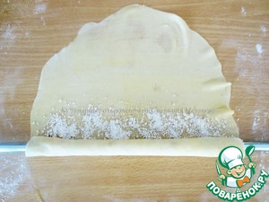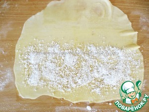 Не посыпанное начинкой тесто должно оказаться сверху.