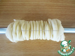 Собрать свернутое тесто в гармошку