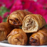 Выпекать в разогретой до 200 градусов духовке 10 минут. Затем снизить температуру до 180 градусов. Перед тем как продолжить выпекать, смазать рулеты оставшимся растопленным сливочным маслом и затем выпекать еще 40 минут. -