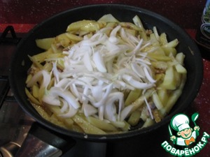 Выложить к сельди картошку, прибавить огонь и пожарить до полуготовности.