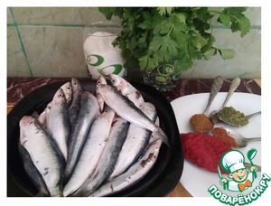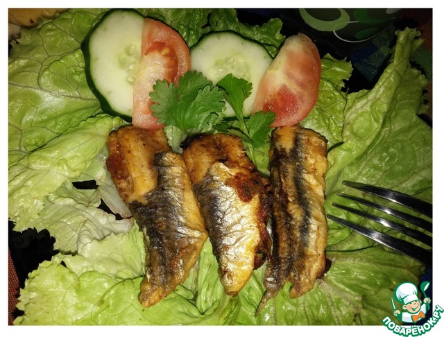 Мелкая рыбка напоминающая мне кильку или салаку, здесь продается свежей, не соленой и называется сардина (можно заменить мойвой). Очень нравится вкус ее начинки, он соленый и острый одновременно, ее хочется еще и еще... а аромат... мммм...