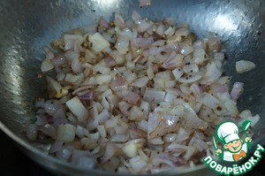 Лук обжариваем на небольшом огне до прозрачности и мягкости, зажаривать его не надо.