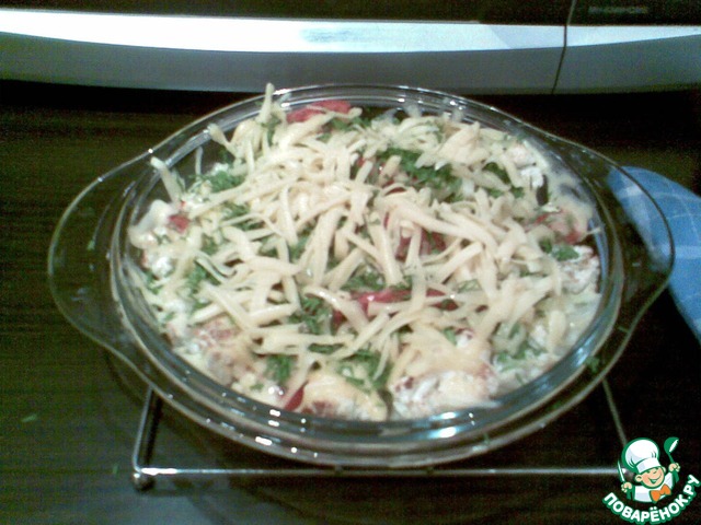 Вернуть форму в духовку и подержать до тех пор, пока сыр не расплавится.