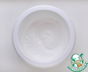 В меренгу добавляем рисовую муку с сахарной пудрой. Очень аккуратно размешиваем лопаточкой или спатулой сверху вниз. Мешаем до тех пор, пока масса не станет однородной.