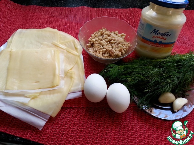 Ингредиенты для «Сырные трубочки с чесноком и орехами»:
