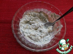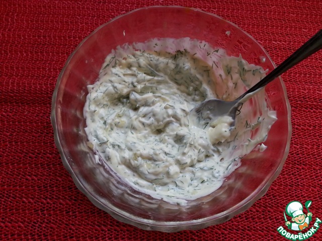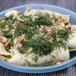 - Орехи грецкие (Измельченные. Укроп, соль.) — 1/2 стак.