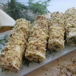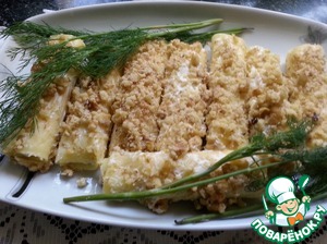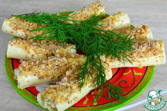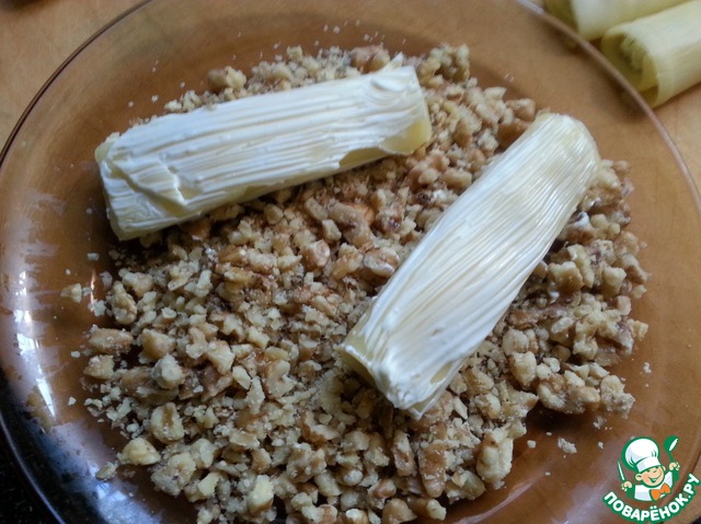 Рецепт «Сырные трубочки с чесноком и орехами»: