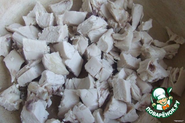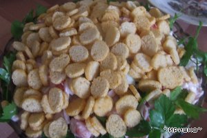 Рецепт «Куриный салат с ветчиной и сухариками»: