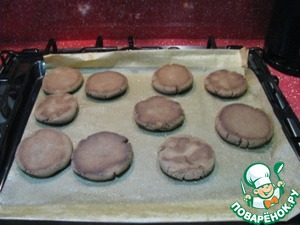 Тесто хорошо поддается лепке. Я отрываю кусочек скатываю в шарик между ладонями и расплющив и выкладываю на смазанный растительным маслом пергамент.