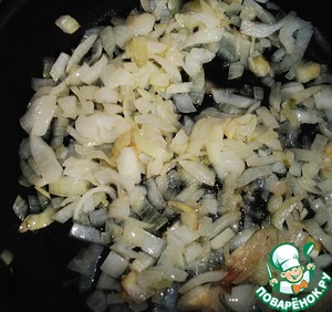 Лук чистим режем кубикам, обжариваем на растительном масле.