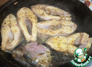 Разогреваем глубокую сковороду, наливаем растительного масла и обжариваем карпа с двух сторон на сильном огне по 3-4 мин.