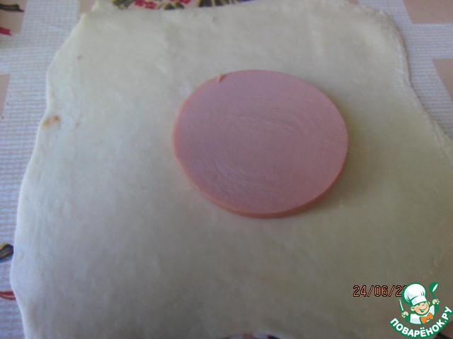 Наверх кладем кусок колбасы