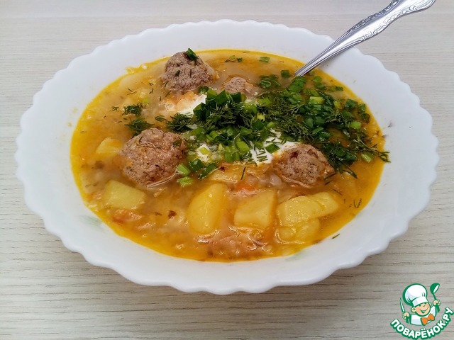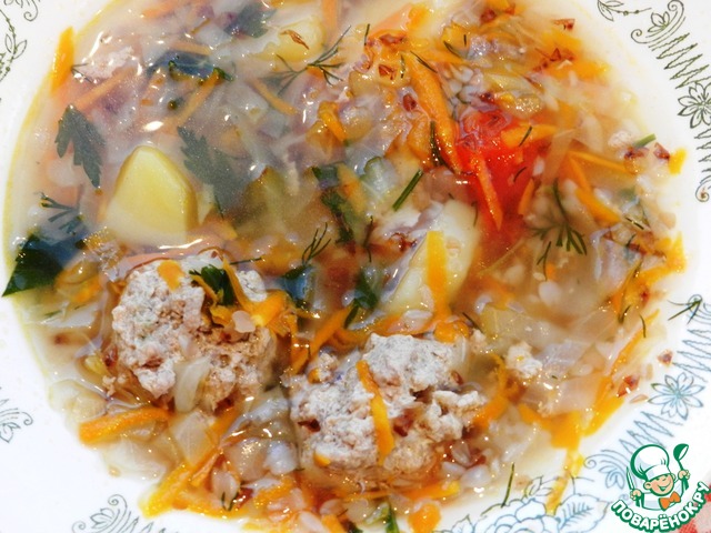 Рецепт «Гречневый суп с капустой и фрикадельками»: