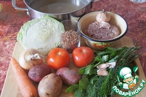 Ингредиенты для «Гречневый суп с капустой и фрикадельками»: