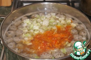 Если капуста молодая и нежная, порядок немного другой: после добавления фрикаделек поварить суп минут 10, затем добавить капусту, зажарку и лаврушку и варить до готовности.