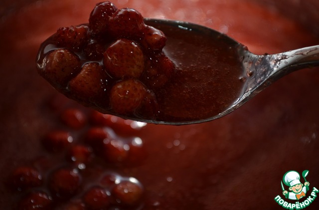 Испробовала рецепт, из ягод, которые были в наличии. В дальнейшем думаю сварганю ещё из других ягод. Но сегодня- клубника садовая и лесная земляника. Земляники где-то поллитровая банка, её мы просто перебираем и очищаем от листочков, травинок и разных жучков, если такие имеются)))Не моем.