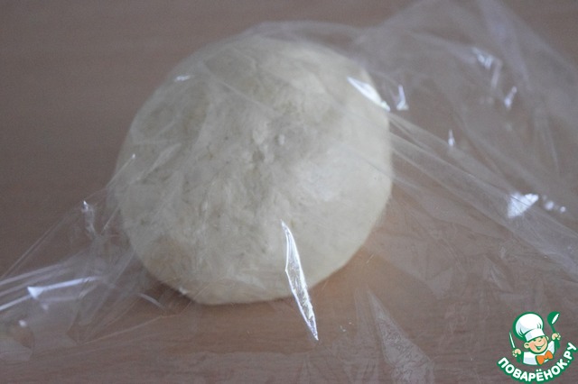Добавляем к тесту 1 ст. л. ледяной воды и быстро замешиваем мягкое тесто - в "колобок". Заворачиваем его в пищевую плёнку и отправляем в холодильник на 30 минут.