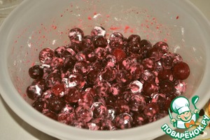 2. Тем временем почистим вишню и перемешаем ее с крахмалом.
