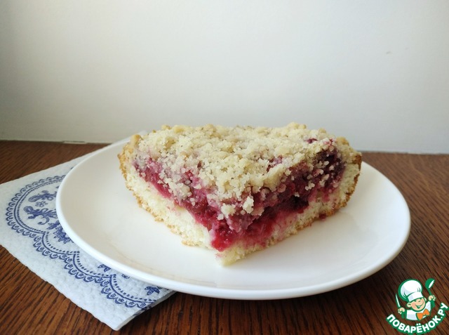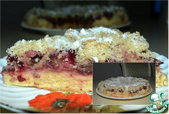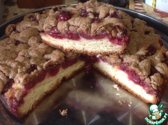 Ягоды придают пирогам удивительную сочность и замечательно гармонируют со штрейзелем. Данный пирог можно печь круглый год, летом со свежей ягодой, зимой из замороженной или консервированной.