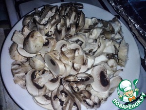 Шампиньоны дольками. Вешанки произвольно. В принципе можно брать только один сорт грибов.