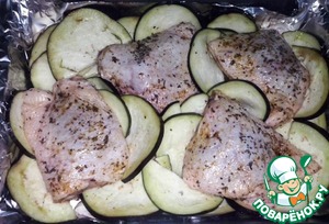 Выкладываем бедра и баклажаны.