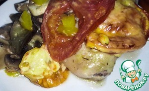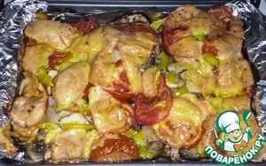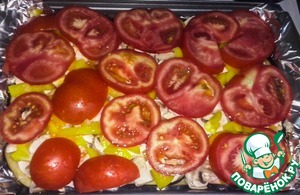 Поверх грибов засыпаем перец и укладываем помидоры.