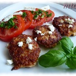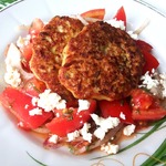 В преддверии очередного кабачкового сезона хочу предложить вам несложный интересный рецепт оладий из кабачка (цуккини), с добавлением фарша, которые подаются на подушке салата из томатов, с кислинкой. Настоящий летний рецепт для жарких дней или быстрого ужина.