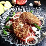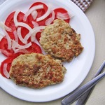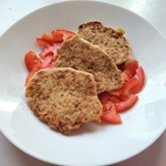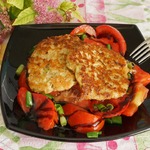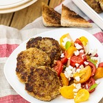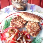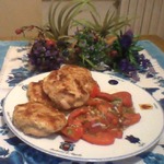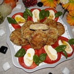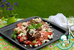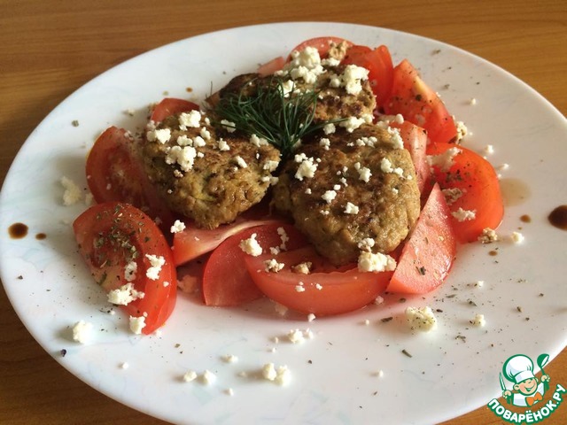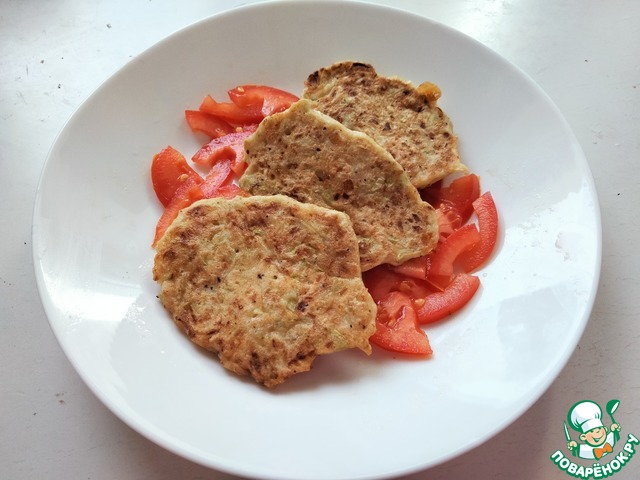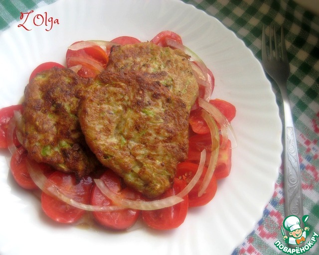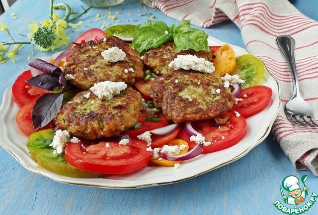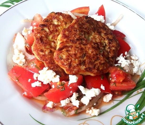 Рецепт «Кабачковые оладьи с фаршем на помидорном салате»: