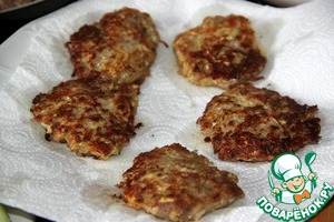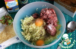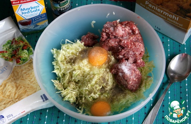 UPD: В этот раз в оладьях: 600 гр цуккини, 200 гр фарша, 1 яйцо и пармезан.