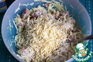Натереть очищенные кабачки (без семян) или цуккини на крупной терке