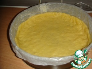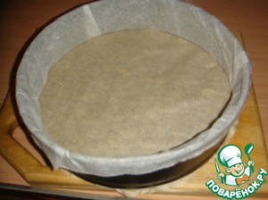 Форму (24х24) у меня разъемная в диаметре 26 см, смазываем маслом, а если нужно то и выстилаем пергаментом.
