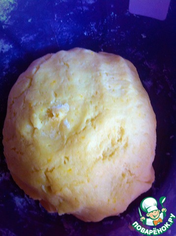 Сразу хочу извиниться за качество фото и вид формы для выпечки, просто готовила на даче. И так... Муку смешать с разрыхлителем добавить натертое сл. масло (или можно порубить ножом прямо с мукой). Затем добавить взбитое 1 яйцо с 50 гр сахара и щепоткой соли.